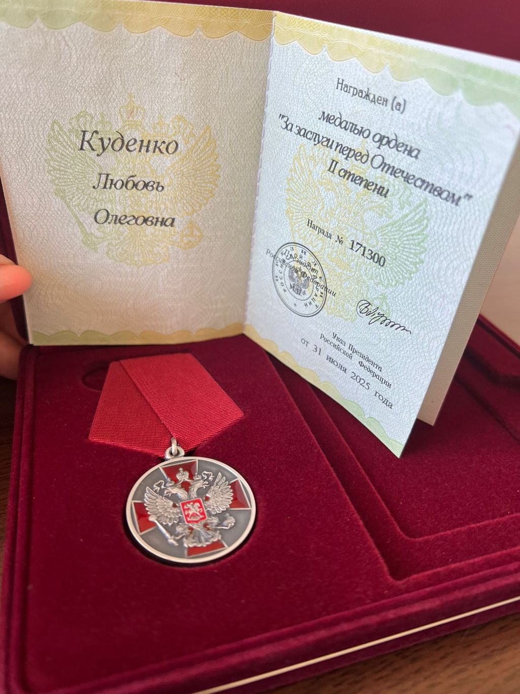 Генеральный директор предприятия ВОС «Крымпласт» Любовь Куденко награждена Медалью Ордена «За заслуги перед Отечеством второй степени»