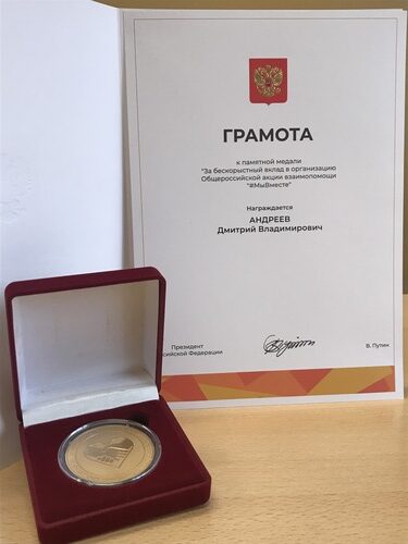 Член Центрального правления ВОС, председатель Костромской региональной организации ВОС Д. В. Андреев награждён памятной медалью Президента Российской Федерации